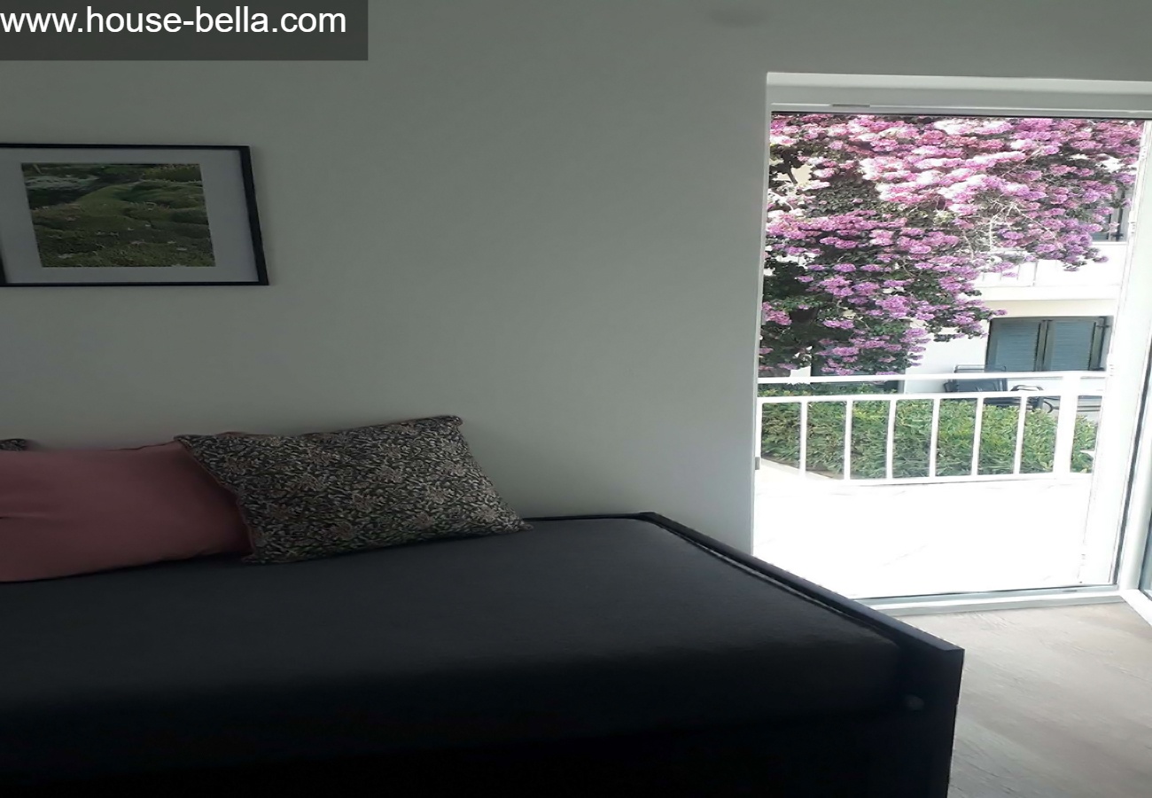 Balcony (access from bedroom 1): 8m² with sea view to almost all sides. Coffee table and chairs to enjoy the