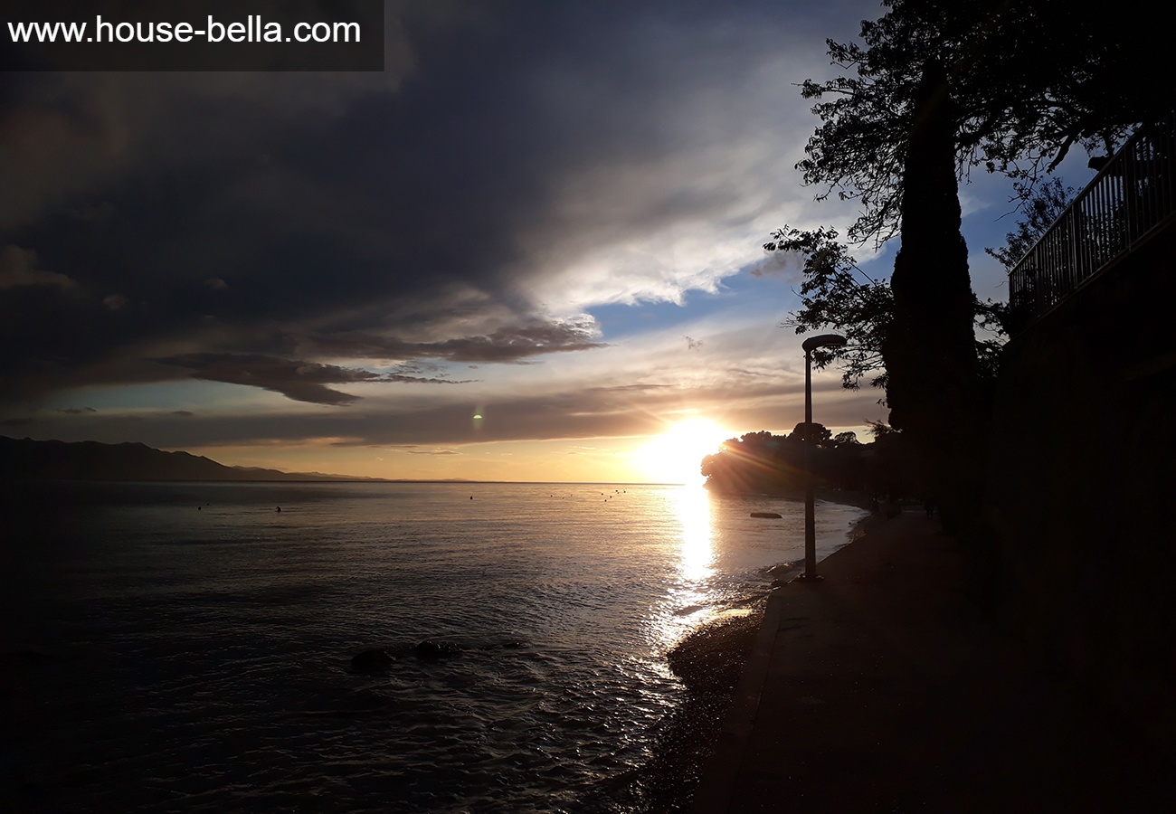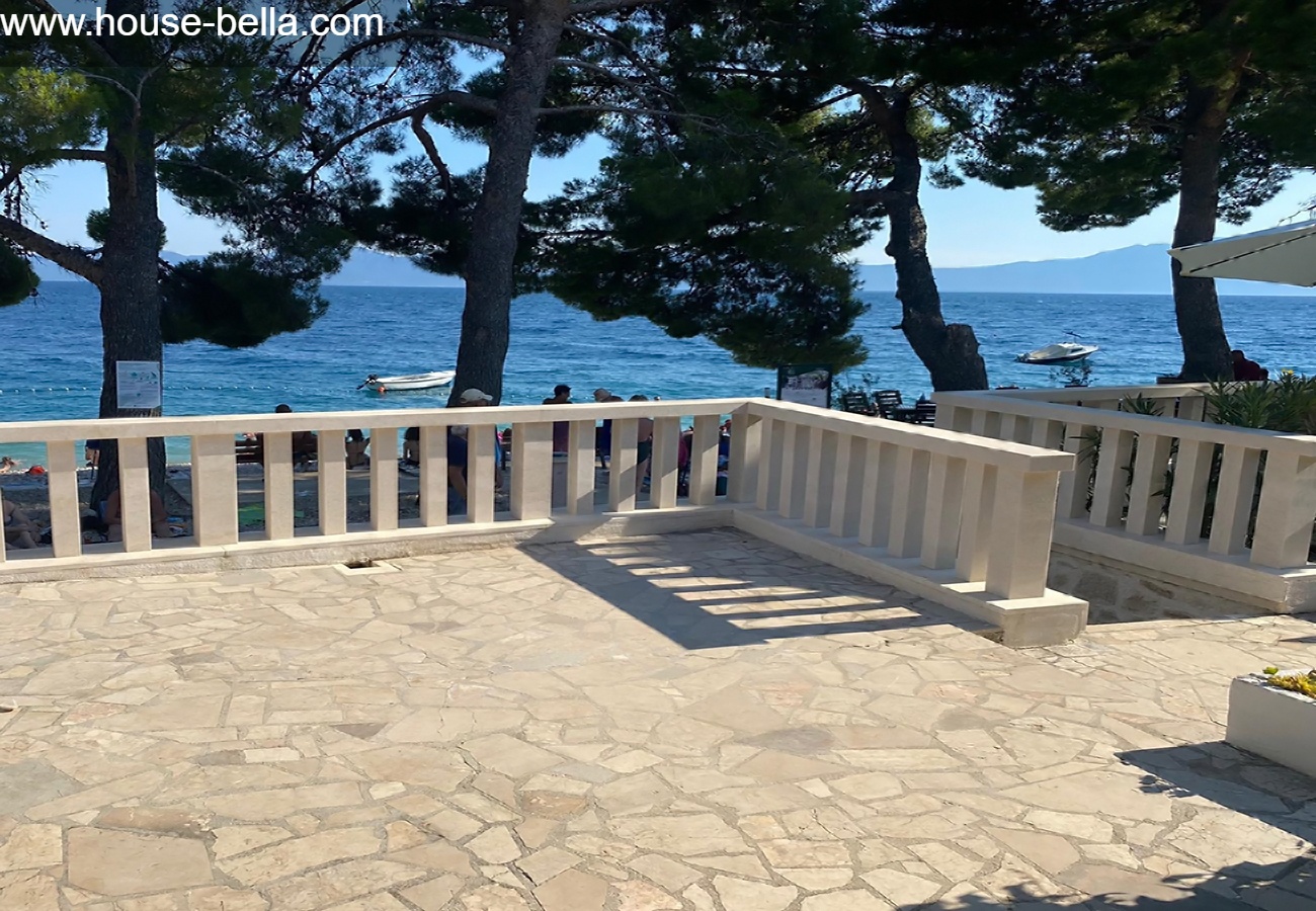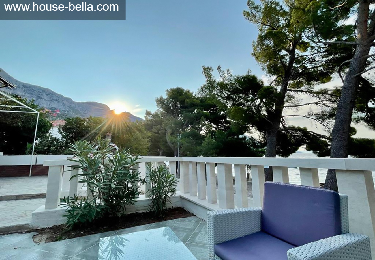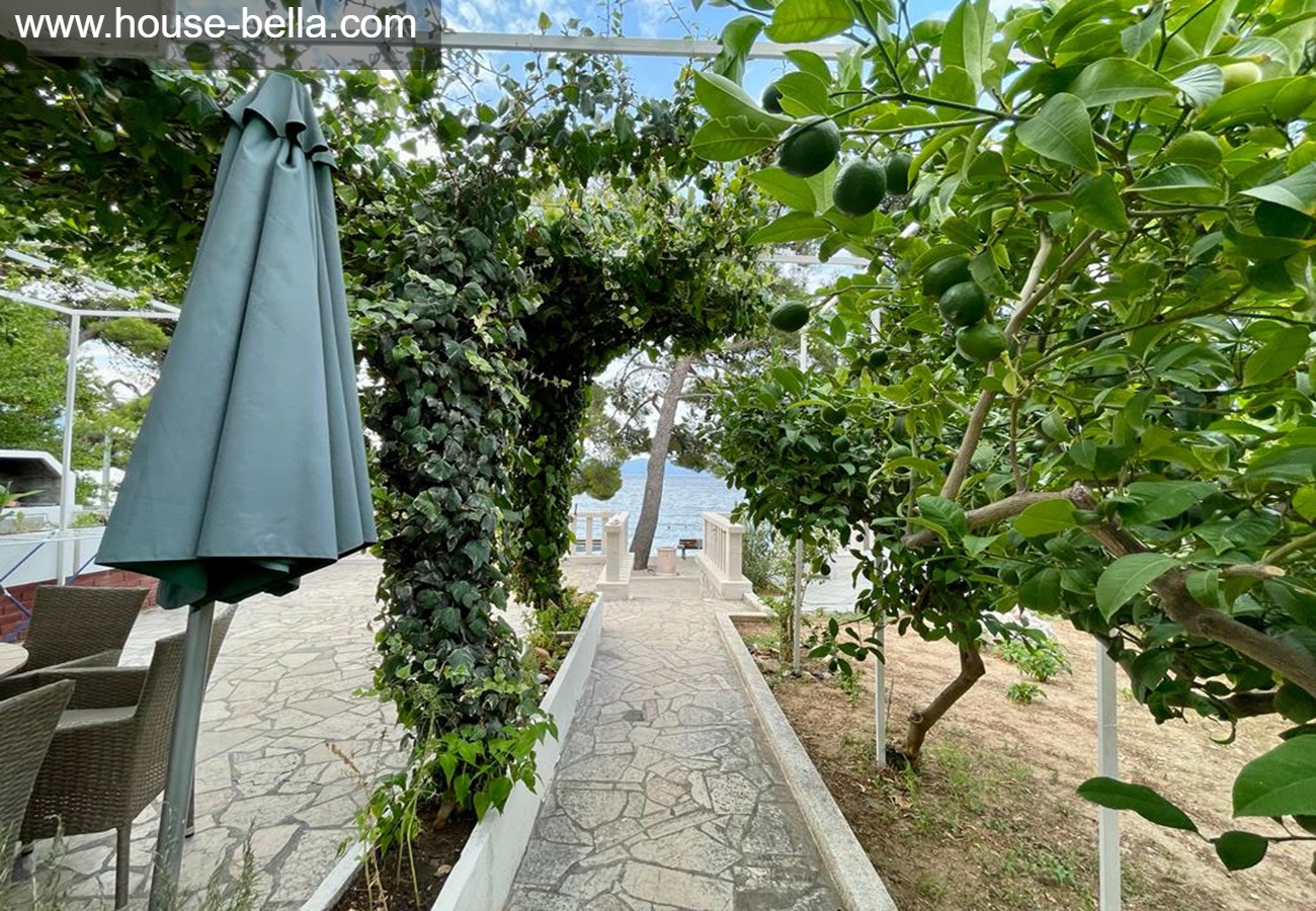 Terrace 1 (access from the garden): 8m² with sea view behind the beautiful stone fence, surrendered by pink,